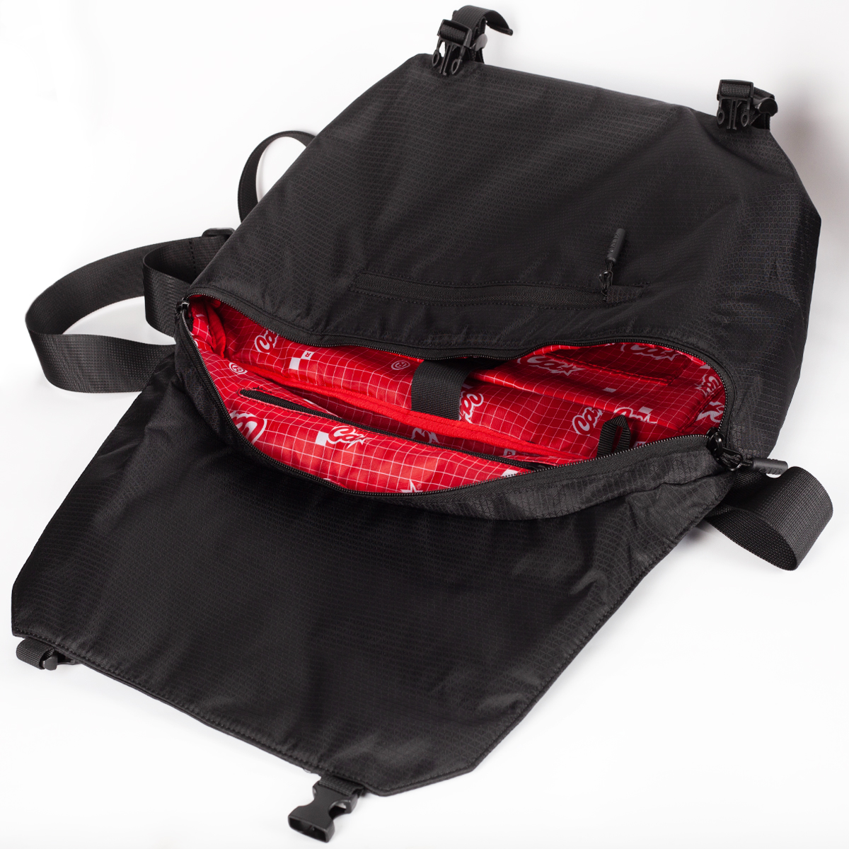 Удобная технологичная и вместительная сумка с трехточечным ремнем.