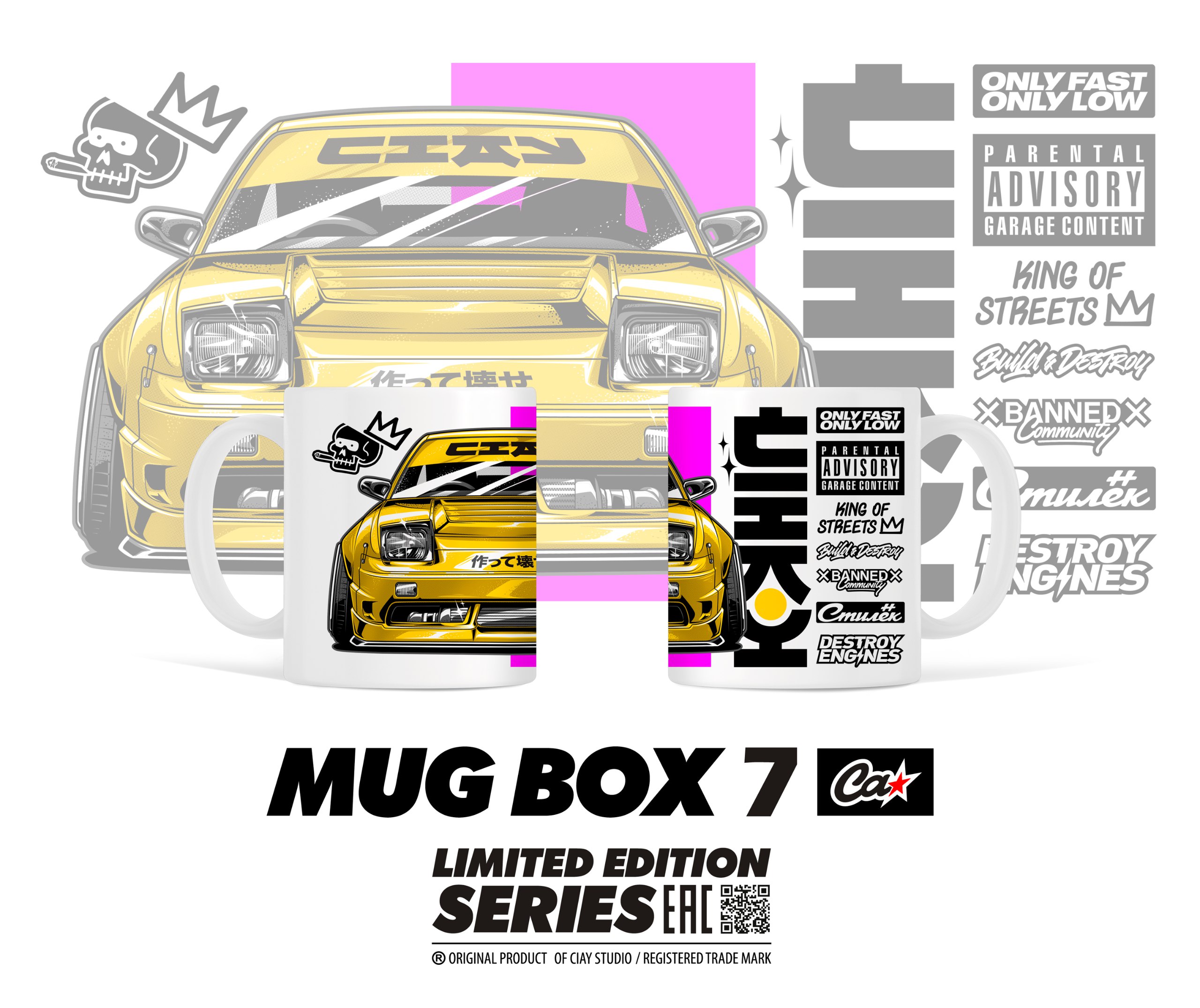 В Mug Box ты найдешь фирменную кружку CIAY с одним из 7 дизайнов данного набора