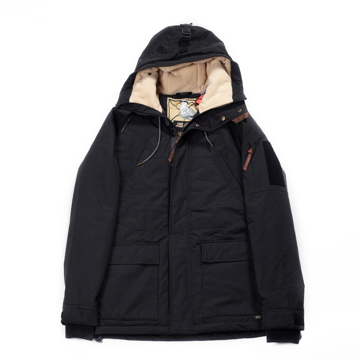 • Высокий ворот и глубокий капюшон с двумя регуляторами для вашего удобства. Флисовая подкладка капюшона обеспечивает дополнительный комфорт;
