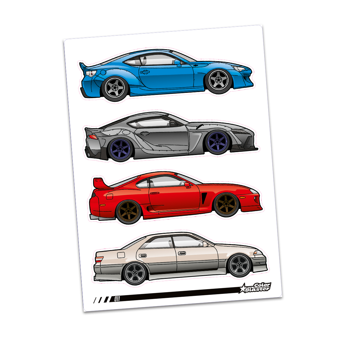Изображены Toyota GT86, Supra A90, Supra A80, Mark 2 X100