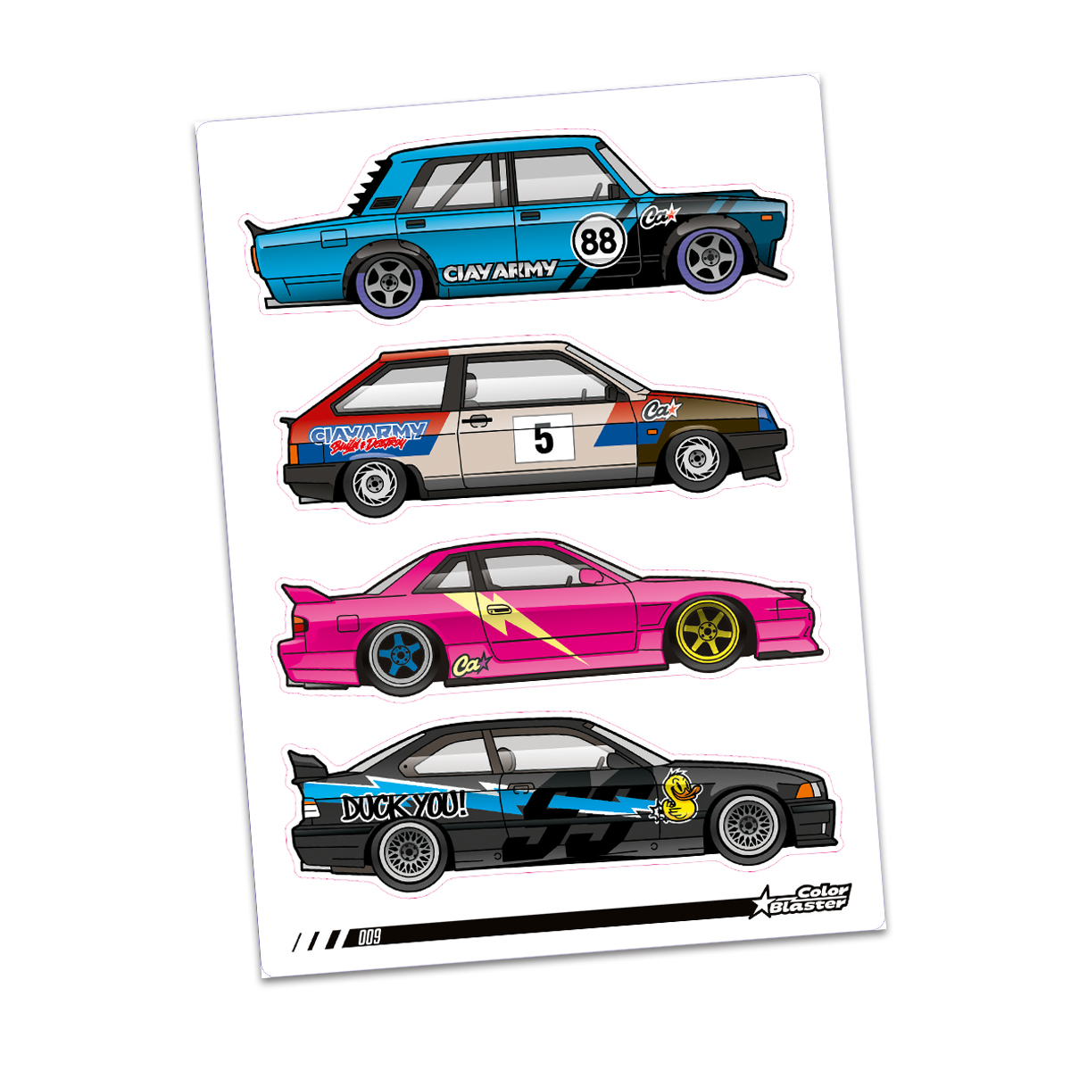 Изображены ВАЗ 2105, 2108 , Nissan s13, BMW E36